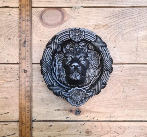 Door Knocker LION & WREATH Cast Antique Iron 130 x 145mm Hig
