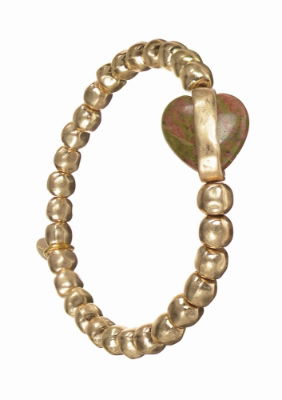 Green Jade Stone Heart & Worn Gold Bracelet