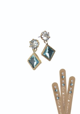 Mini Harlequin Crystal Drop Gold/Clear & Petrol