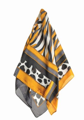 On Safari - Grey, Black & Mustard Silk/Poly Scarf