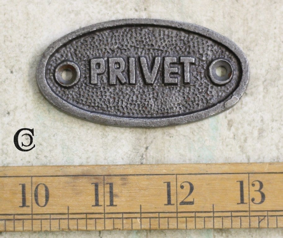 Privet Oval Plaque Antique Cast Iron 75mm x 40mm