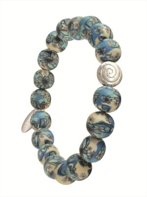 Silver Spiral & Teal Henna Ink Style Poly Fimo Bracelet