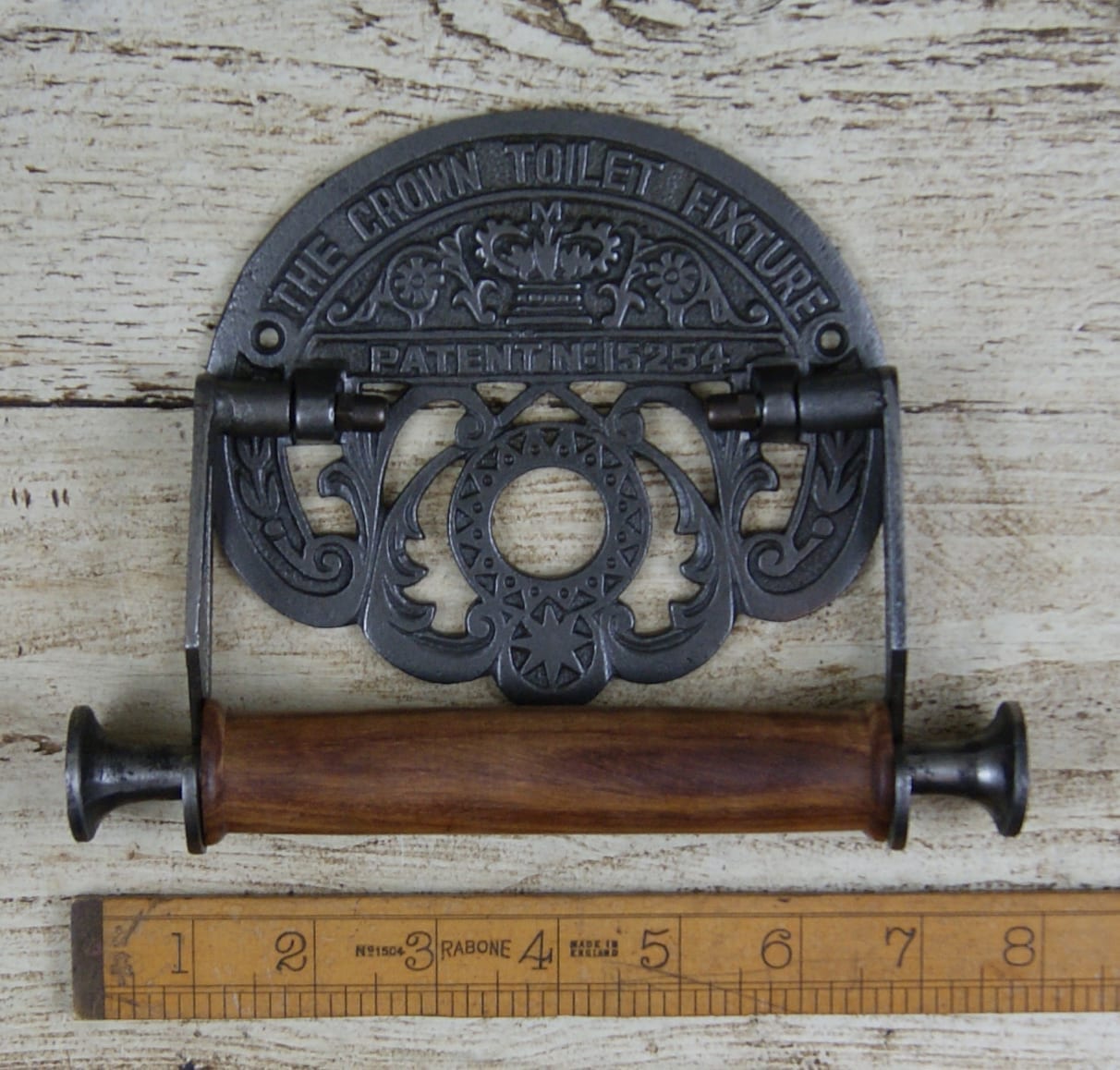 Toilet Roll Holder Crown Fixture Antique Iron & Wood 150mm