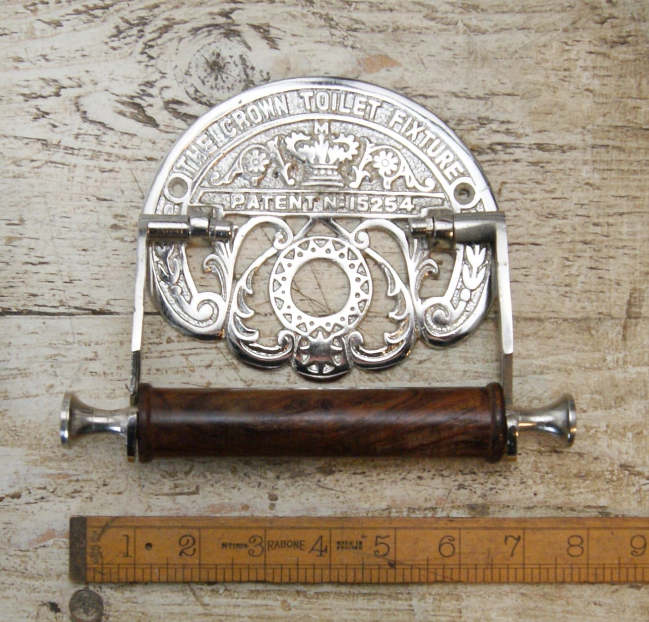 Toilet Roll Holder Crown Fixture Chrome on Cast Iron & Wood 150mm